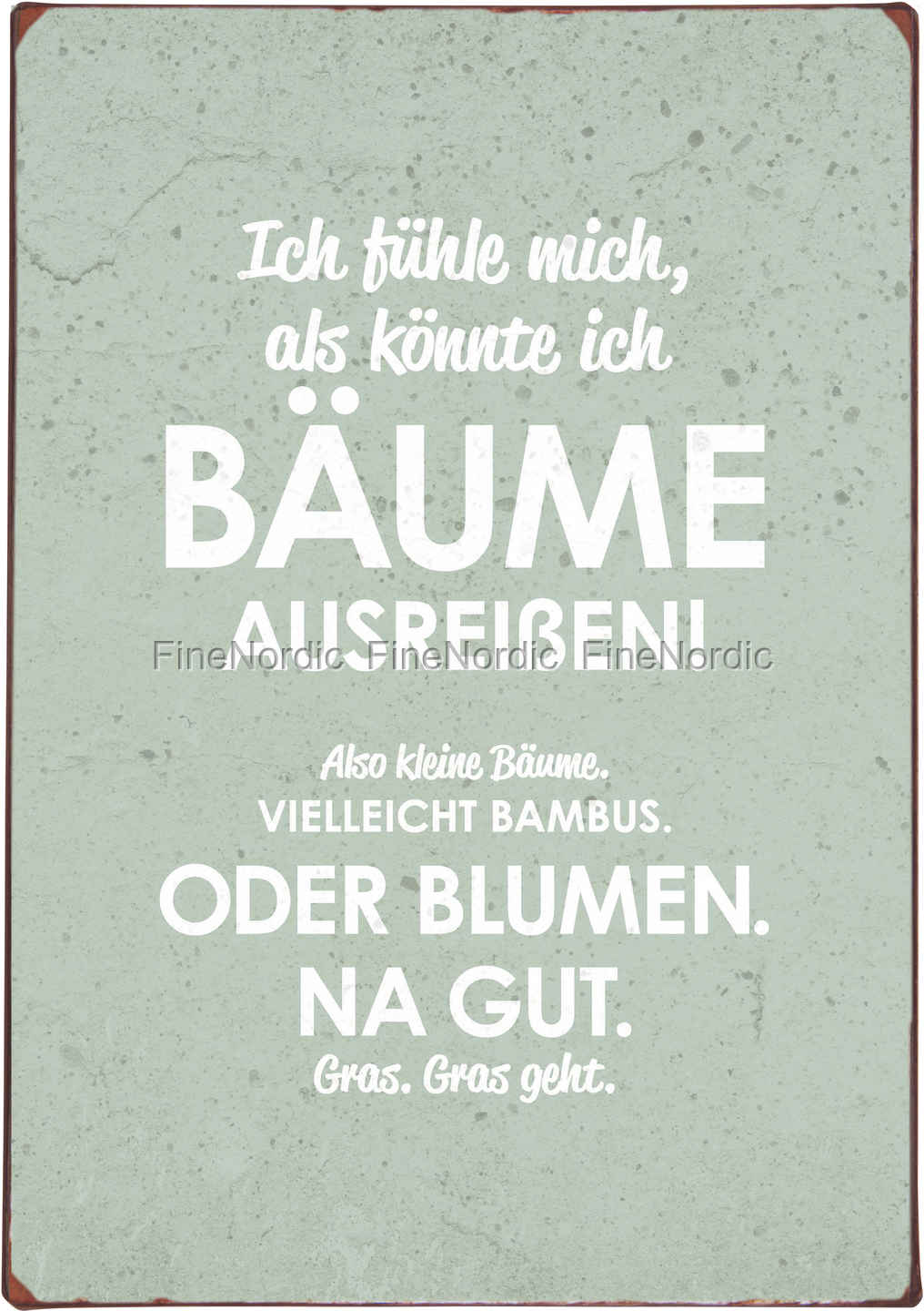 Metallschild Ich fühle mich,als könnte ich Bäume ausreissen von Ib Laursen.