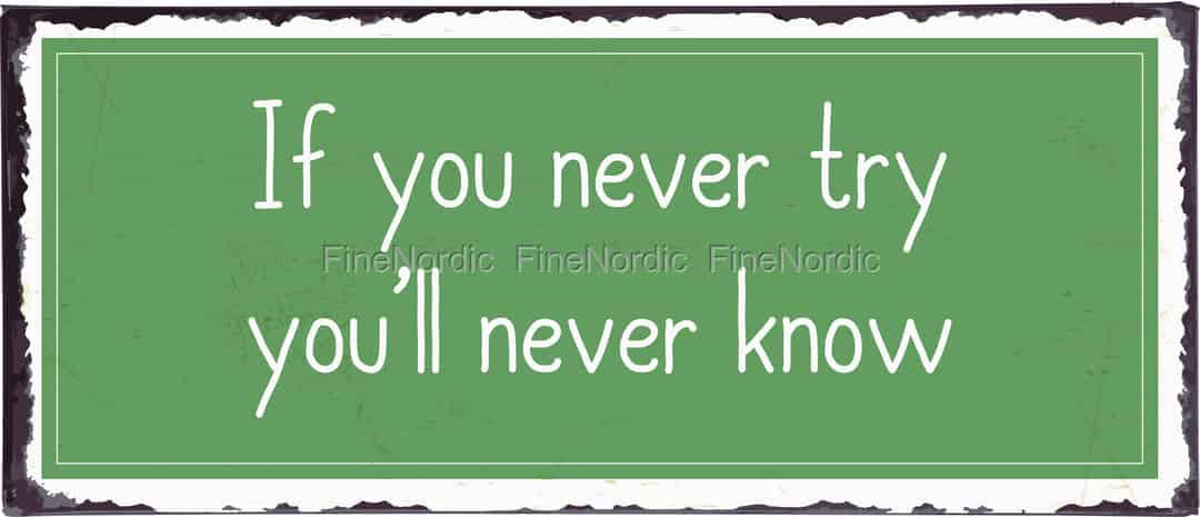 Metallschild If you never try you'll never know, von Ib Laursen.