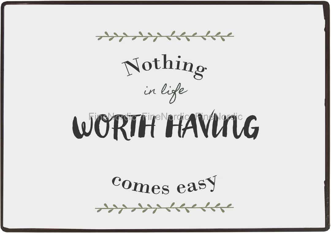 Hier online kaufen, Metallschild Nothing in life worth having comes easy, von Ib Laursen.