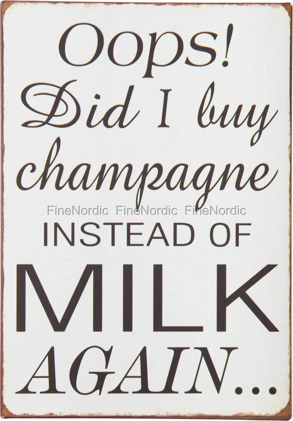 Ib Laursen Metallschild - Oops! Did I Buy Champagne Instead of Milk