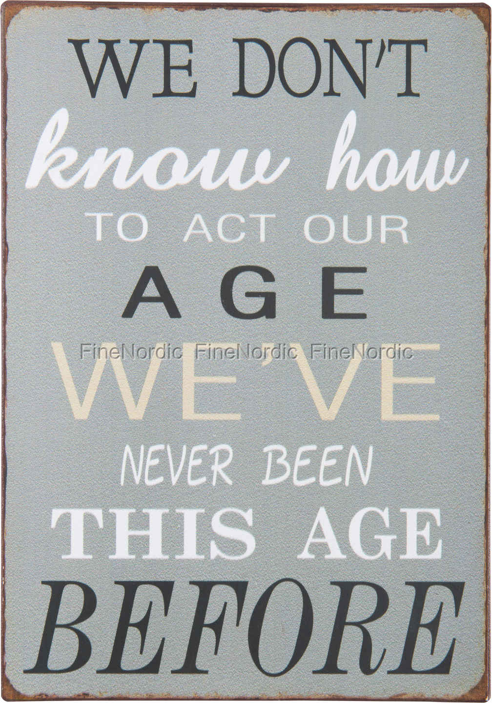Metallschild We Don't Know How to act our Age, von Ib Laursen.