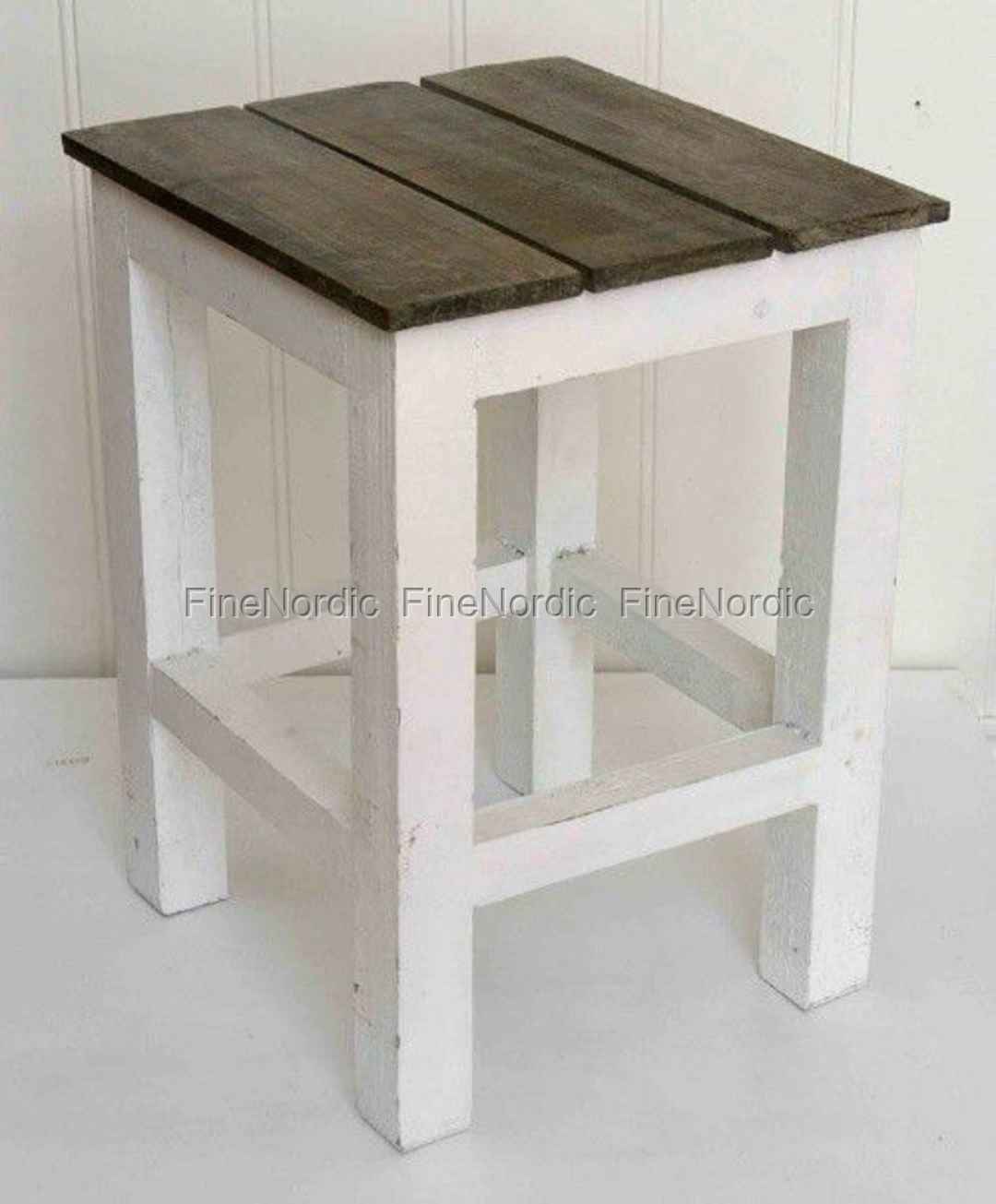 Netter kleiner weißer Hocker mit holzfarbenem Sitz in Used-Look von Ib Larsen. Prima in der Küche, wenn mal ein Sitzplatz mehr benötigt wird.