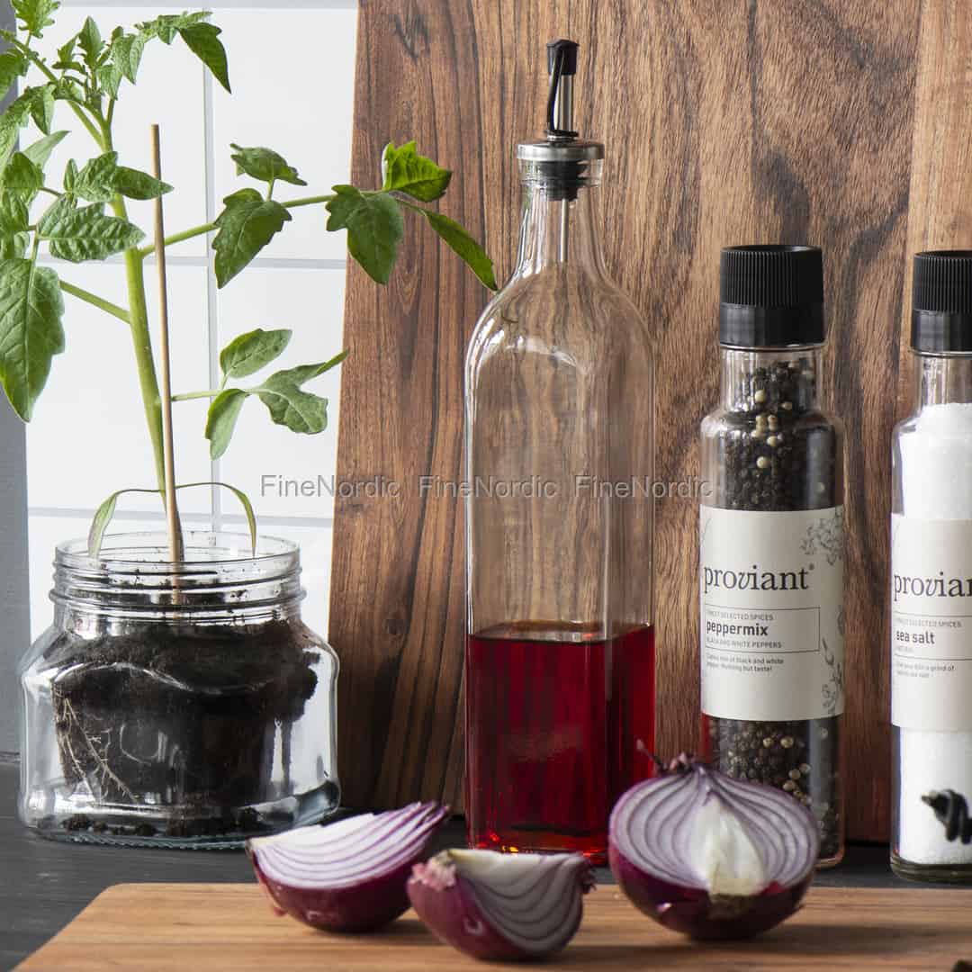 Die quadratische Ib Laursen Öl- und Essigflasche ist aus langlebigem Glas gefertigt und kommt inklusive eines Ausgießers. Dank des durchsichtigen Glases können Sie immer gleich sehen, wieviel Öl oder Essig noch in der Flasche vorhanden ist und der praktische Spender verhindert, das verschüttet oder gekleckert wird. Die Glasflasche ist der perfekte Glasbehälter für Öl oder Essig aber auch andere Flüssigkeiten können darin aufbewahrt werden. Und wenn die Flasche nicht in Gebrauch ist, können Sie sie mit dem kleinen, angebrachten schwarzen Deckel schließen und so wird ihr Inhalt von Obstfliegen und Staub geschützt. Stellen Sie die schlichte, jedoch sehr stilvolle Ölflasche oder Essigflasche am besten direkt auf die Küchenzeile, denn so ist sie immer in Reichweite und sie sieht dazu ja auch sehr dekorativ aus. Vielleicht bestellen Sie am besten gleich zwei, so haben Sie ein hübsches und übereinstimmendes Öl- und Essigflaschen Set für Ihre Küche.