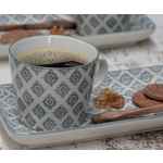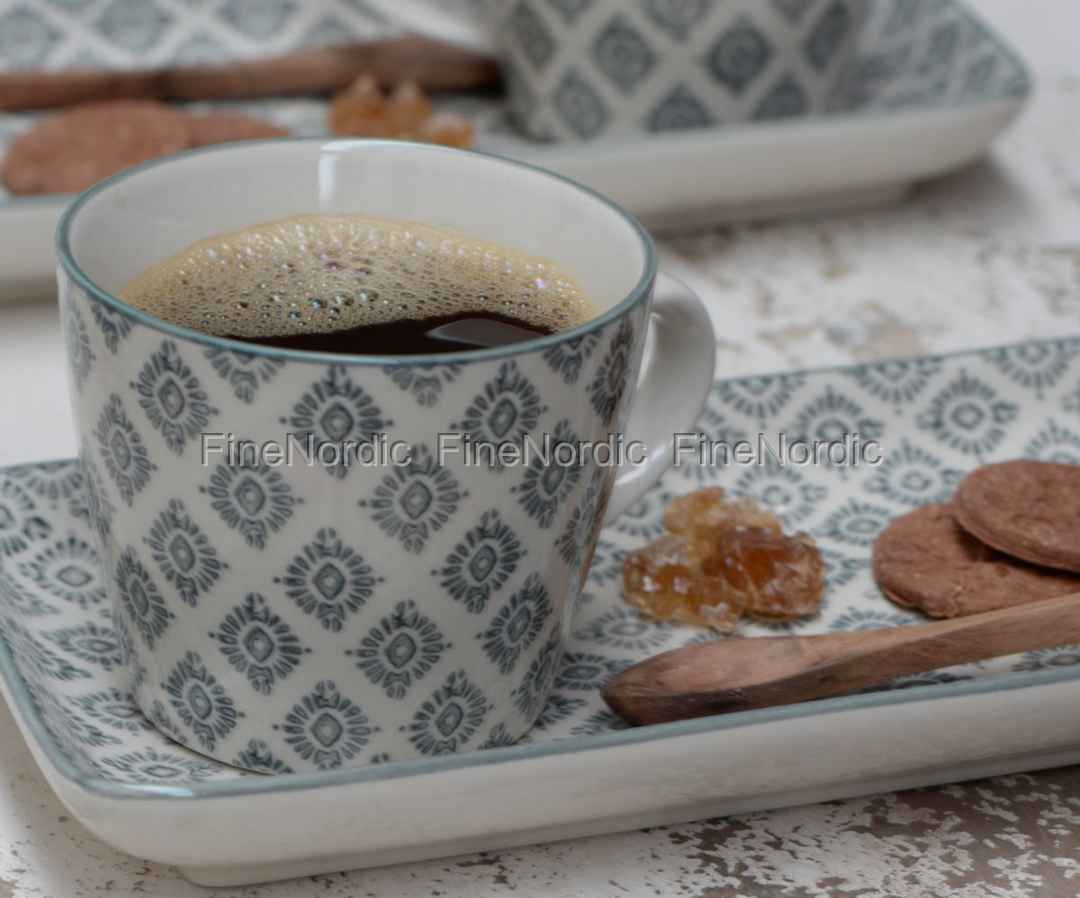 Die Ib Laursen Casablanca Platte in Grau ist ein attraktiver, rechteckiger Servierteller. Eine Tasse Kaffee und ein Stück Kuchen oder Plätzchen finden bestens auf ihr Platz. Auch für kleine Häppchen oder Leckereien zu reichen ist sie gut zu gebrauchen. Das hübsche graue Muster auf hellem Hintergrund macht sie zu einem Highlight auf dem Tisch. Sie ist dazu auch sehr praktisch für den täglichen Gebrauch, denn sie ist geeignet für die Spülmaschine genauso wie die Mikrowelle. Sie kann außerdem gut mit den anderen Casablanca Geschirrteilen kombiniert werden.