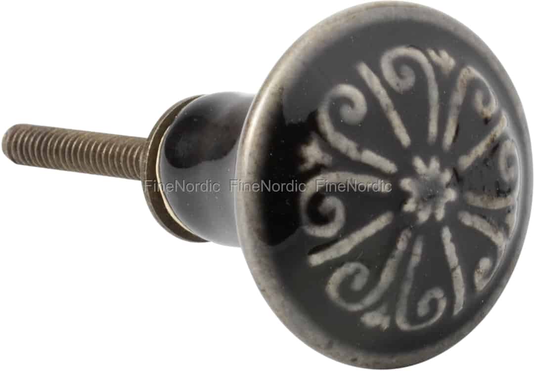 Das erste, was einem an dem Porzellangriff Graue Blume von Ib Laursen auffällt, ist das hübsche, hellgraue Blumenmuster auf dem Griff. Der dunkelgraue Feinkeramikgriff peppt alte Möbeln auf und gibt Kommoden und Schränken einen ganz neuen Look. Der nostalgisch aussehende, runde Möbelknauf passt zu modernen Möbeln genauso gut wie zu alten. Bei modernen Möbeln bietet er einen tollen Kontrast und bei alten Möbeln schaut er aus, als wäre er dort schon immer angeschraubt gewesen. Eine ca. 3,7 cm lange Schraube ist an den Griff angebracht. Die Schraube hat einen Durchmesser von 0,4 cm und dank der Unterlegscheibe und der Mutter ist der Griff im Handumdrehen befestigt. Haben Sie vielleicht auch ein altes Erbstück das etwas liebevolle Fürsorge gut gebrauchen könnte?