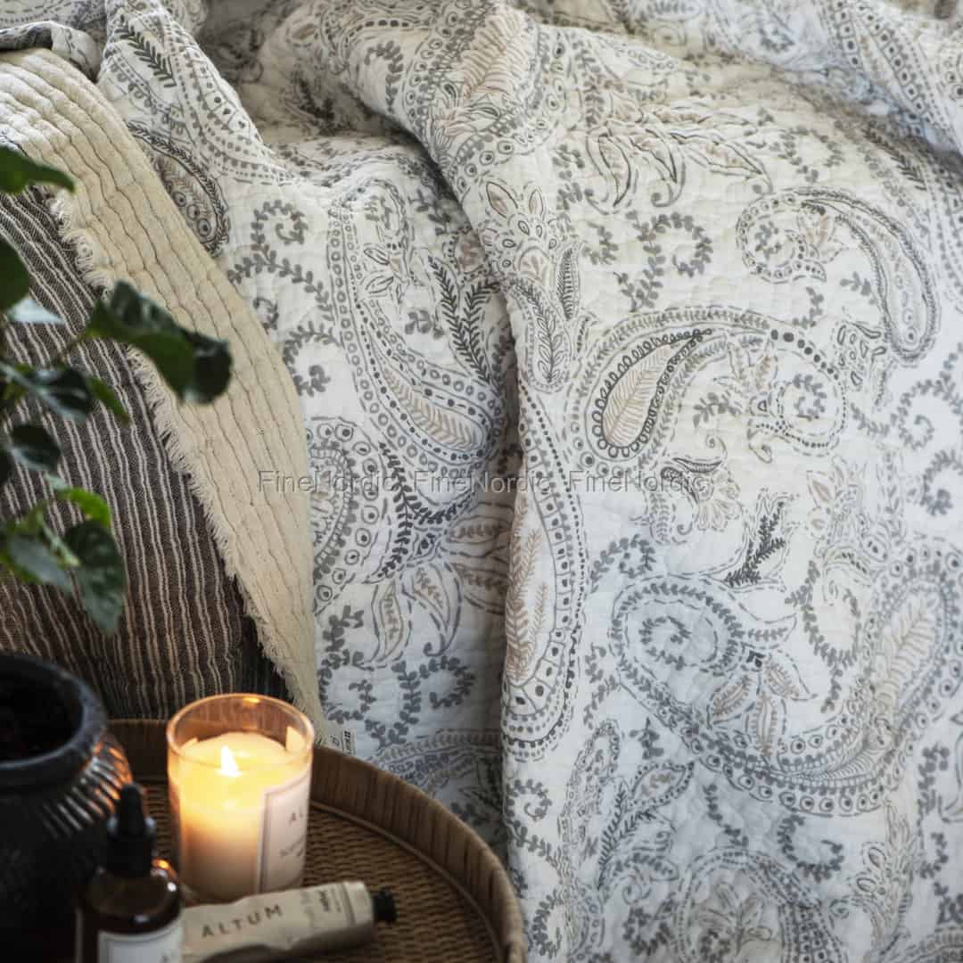 Das hübsche, beige-grau-farbene Paisley Muster schmückt diesen weißen Ib Laursen Quilt auf der Vorder- wie auch auf der Rückseite. Das altbekannte Paisley Muster feiert ein Comeback und mit dieser Baumwolldecke liegen Sie voll im Trend. Ob als Kuscheldecke auf der Couch, als Tagesdecke im Gästezimmer oder als provisorische Spieldecke im Kinderzimmer, der modische Quilt kann vielseitig verwendet werden. Der hochwertige Quilt ist aus 100% Baumwolle gemacht und kann bei 30 C gewaschen werden. Die Ib Laursen Quilts sind dank ihrer trendigen Farben, attraktiven Mustern und ihrer guten Qualität äußerst beliebt und in unserem Webshop haben wir eine reichliche Auswahl davon anzubieten.
