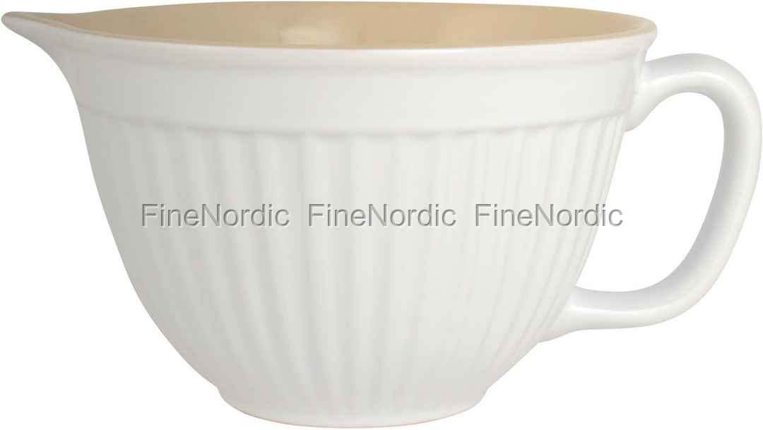 Mynte Pure White Unser Klassiker: Die tolle Rührschüssel mit nostalgischem Flair, Henkel und Ausguss in Weiß von Ib Laursen Geschirr. Vielseitig verwendbar für Kuchen- oder Pfannkuchenteig, einfach zum Dekorieren oder für Salate. Herrlich kombinierbar mit den anderen Farben aus der Mynte-Serie.