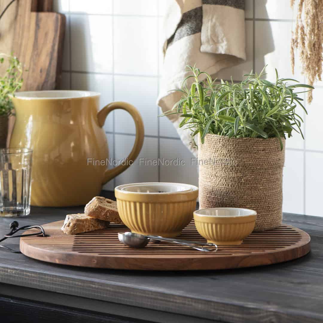 Hier online kaufen, Schneidebrett mit Rillen Rund Geöltes Akazienholz mit Lederschnur, von Ib Laursen.