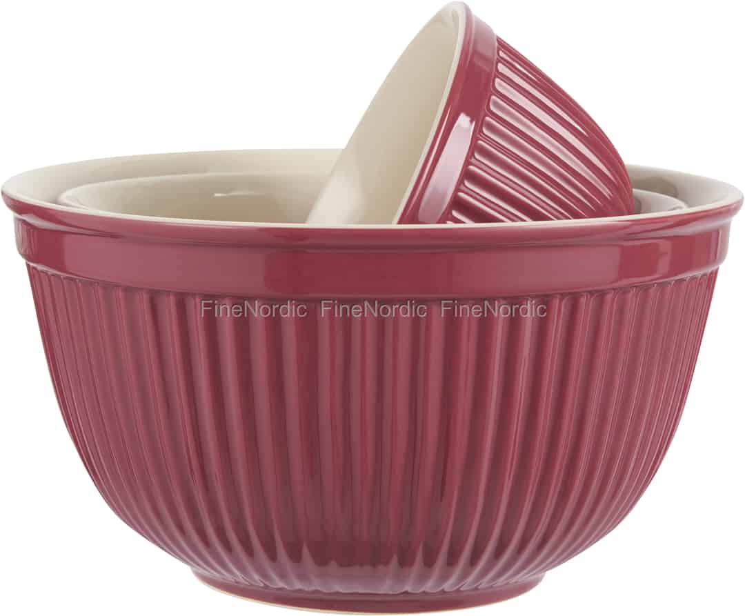 Dieses dreiteilige Schüsselset hat einfach alles zu bieten: Ein fantastisches geripptes Design, eine wunderschöne Brombeer-Parfait Farbe und da die Schüsseln in drei verschiedenen Größen sind, können sie auch so vielseitig eingesetzt werden. Sie können zum Beispiel einen Salat in der großen Schüssel und einen Nachtisch in der mittleren Schüssel servieren und die kleine Schüssel wäre doch vielleicht was für eine Sauce oder einen Dip? Diese wunderschönen Schalen bringen Farbe auf den Tisch und sie sind außerdem spülmaschinen-, mikrowellen- und ofenfest. So praktisch und dazu noch so gut aussehend? Gut gemacht, Ib Laursen!