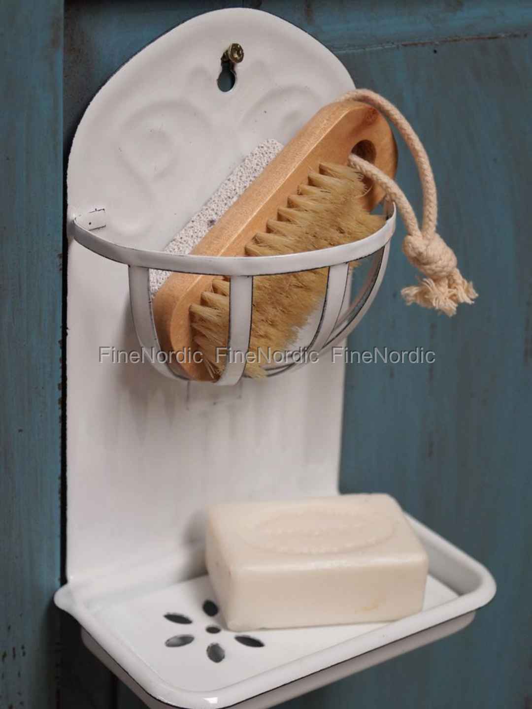 Die Ib Laursen Emaille Seifenschale mit Korb ist zum Anhängen an die Wand gedacht und ist für jeden Nostalgie Liebhaber ein absolutes Muss. Die weiße Emaille Schale erinnert an Omas Zeiten und bietet in einem modernen Bad einen wunderschönen Kontrast. Das Innenteil ist herausnehmbar und kann somit leicht gesäubert werden. Die Spülbürste oder -schwamm können in dem Korb gut trocknen und die Seife kann sicher in der Schale liegen. Die Seifenschale mit Korb kann gerne mit anderen Emaille Schalen von Ib Laursen kombiniert werden und passt in die Küche, genauso gut wie in das Bad.