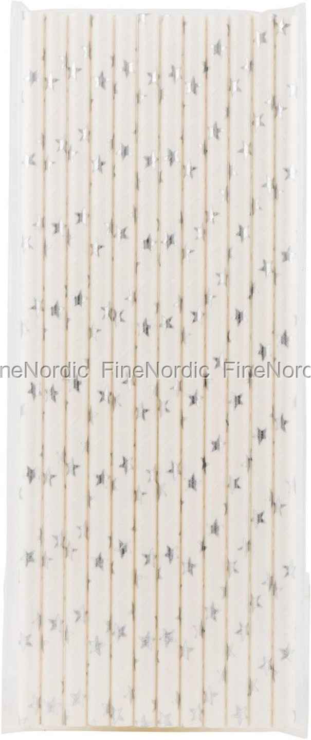 Ib Laursen Strohhalme - Weiß mit Silbersternen - 12 Stück