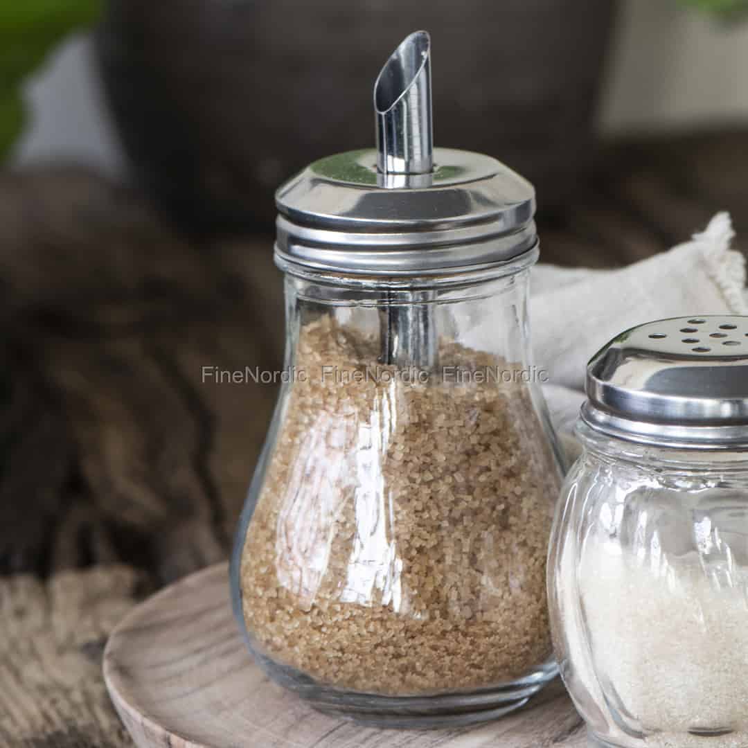 Benutzen Sie lieber einen Zuckerstreuer mit Ausguss als einen mit Löchern? Dann könnte Sie dieser Ib Laursen Zuckerstreuer mit Ausguss interessieren. Das durchsichtige Glas des Streuers bietet einen schönen Kontrast zu dem glänzenden Metalldeckel. Sie können ihn mit weißem, braunem, oder auch Rohrzucker füllen, ganz wie Sie mögen. Stellen Sie ihn auf Ihren Esstisch oder auf die Küchentheke, sodass er immer in Reichweite ist, wenn Sie ihn benutzen möchten. Dank des praktischen Ausgusses dieses Zuckerstreuers lässt sich der Zucker mühelos gießen, sodass Sie Ihren Tee oder Kaffee so viel oder wenig Süßen können, wie Sie es bevorzugen. Ein Küchenaccessoire das nicht nur praktisch ist, sondern dazu auch noch gut aussieht? Das gefällt uns ganz besonders gut.
