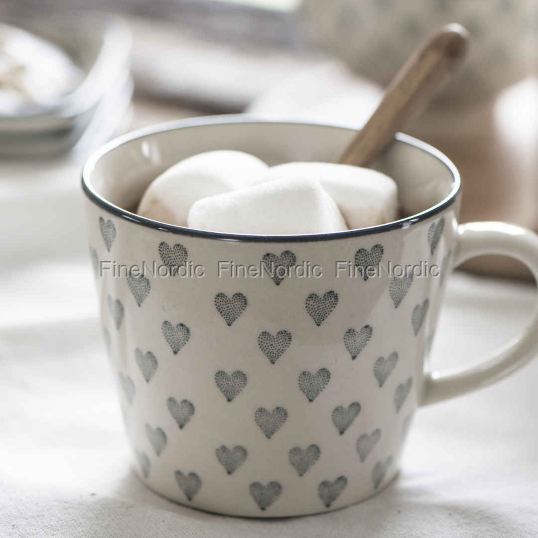 Heiße Schokolade, Kaffee oder Tee - was ist Ihr persönliches Lieblingsgetränk? Egal was es ist, Sie können ganze 250 ml davon in diese charmante Tasse füllen und es dann einfach genießen! Ib Laursens Tasse Grey Hearts bringt Ihnen ein Lächeln auf die Lippen und ein warmes Getränk in Ihren Bauch. Dank ihrer vielen grauen Herzen sieht die Tasse einfach fantastisch aus und ist an ihrem Henkel einfach zu halten und zu tragen. Die Tasse ist sowohl spülmaschinen- als auch mikrowellenfest. Sie ist von Hand bemalt, was ihr einen ganz eigenen, einzigartigen und ethnischen Look verleiht.