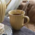 Sind Sie bereits ein Mynte Fan oder haben Sie erst eben gerade Ib Laursens beliebte Geschirrserie entdeckt? Diese Steingutserie wird nicht nur wegen ihrer schönen Farben und des geriffelten Mynte-Designs gefeiert, sondern auch, weil dieses Keramikgeschirr spülmaschinen-, mikrowellen-, ofen- und gefriersicher ist. Das macht es sehr praktisch für einen viel beschäftigten Alltag. Schauen Sie sich doch nur mal diesen Mustard Henkelbecher von Ib Laursen an. Es ist leicht an seinem großen Griff zu halten und die Kombination aus leuchtend gelber Farbe und dem schönen gerillten Design macht ihn zu einem Blickfang auf dem Tisch. Kombinieren Sie diese gelbe Tasse mit den anderen Mustard Geschirrteilen von Ib Laursen oder mischen Sie sie mit ein paar der anderen fantastischen Mynte Farben. Gönnen Sie sich eine kleine Auszeit und genießen Sie eine schöne Tasse Tee oder Kaffee aus dieser gut aussehenden Ib Laursen Keramiktasse.