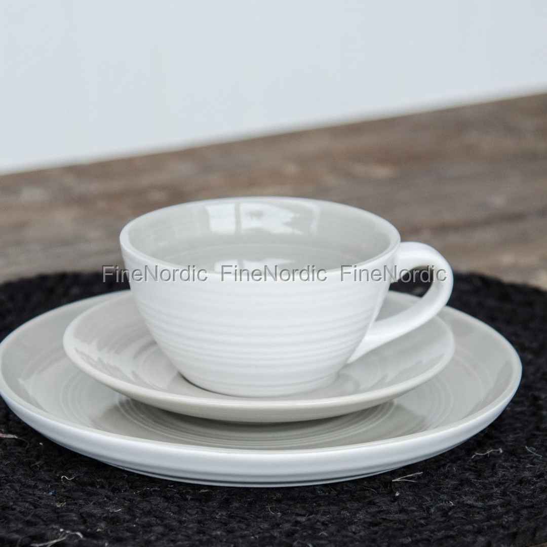 Ib Laursen Tasse mit Untertasse Tide - Grau innen, Weiß aussen