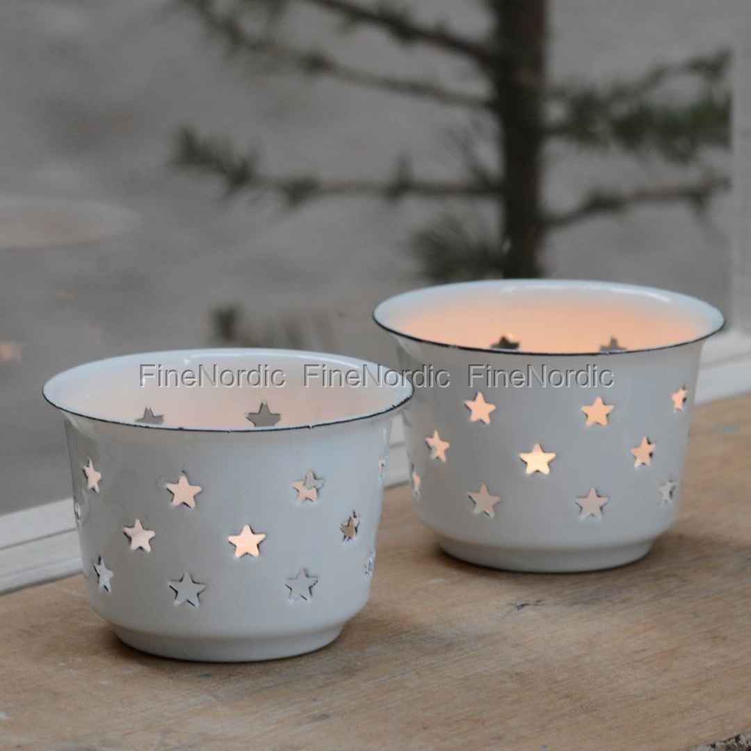 Teelichthalter mit Sternenmuster - Emaille - Weiß, von Ib Laursen.