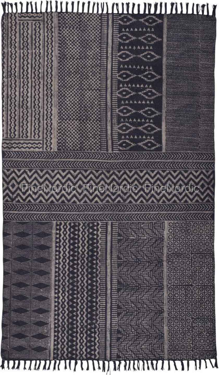 Ib Laursen Teppich - Antik Schwarz mit Weißen Blockdruck - 120 x 180 cm