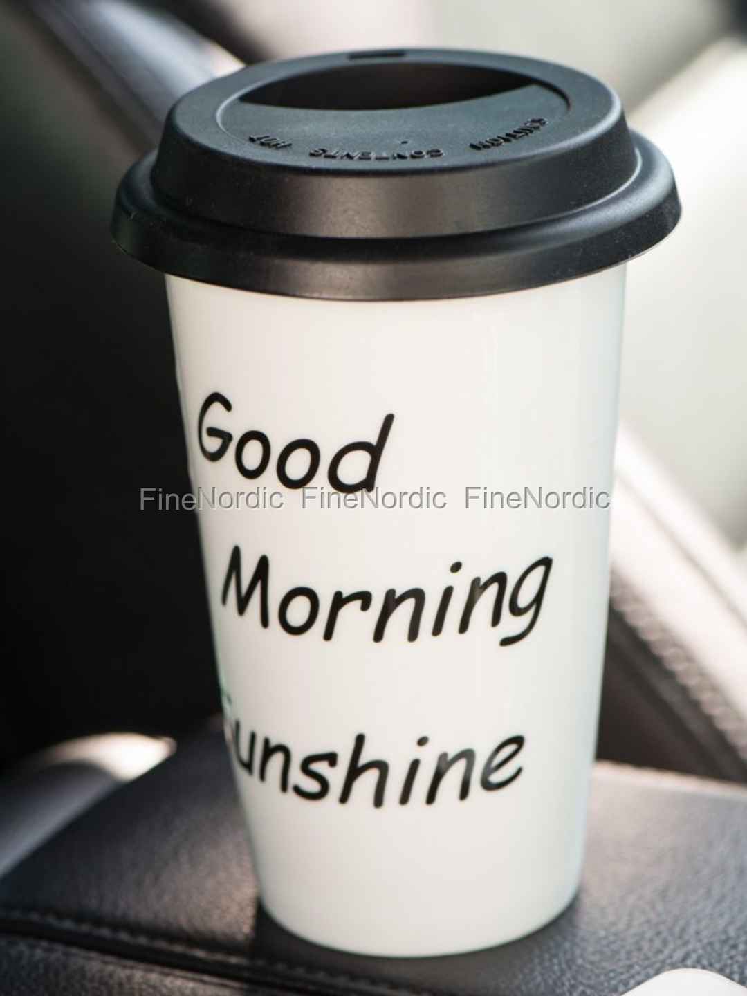 Thermosbecher Good Morning Sunshine mit Schwarzem Deckel, von Ib Laursen.