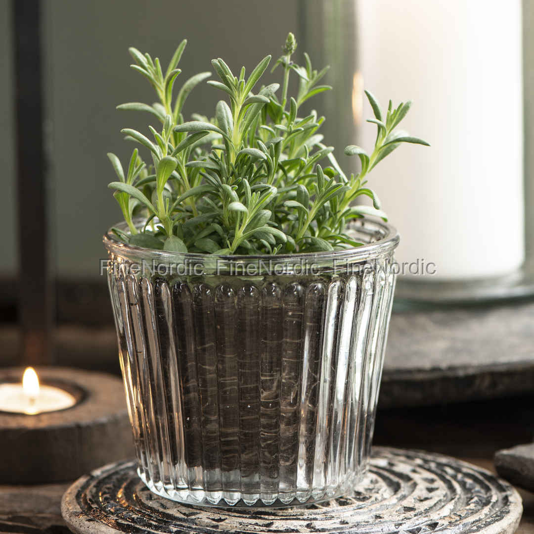 Der Ib Laursen Blumentopf mit Rillen schaut schlicht jedoch sehr stilvoll aus, dank seiner hübschen Rillenoptik. Das durchsichtige Glas kann als kleiner Übertopf für ein Pflänzchen oder ein Kräutchen genutzt werden. So kann das Rosmarin beim Kochen immer in Griffweite auf der Küchenzeile stehen, oder ein hübsches Blümchen in dem gerillten Glastopf die Fensterbank dekorieren. Schön sieht es auch aus, wenn mehrere Blumentöpfe aus verschiedenen Materialien und Größen zusammen gruppiert werden. Der Blumentopf mit Rillen von Ib Laursen ist ein schönes Beispiel für den schlichten und ästhetischen skandinavischen Stil, der weltweit so beliebt ist.