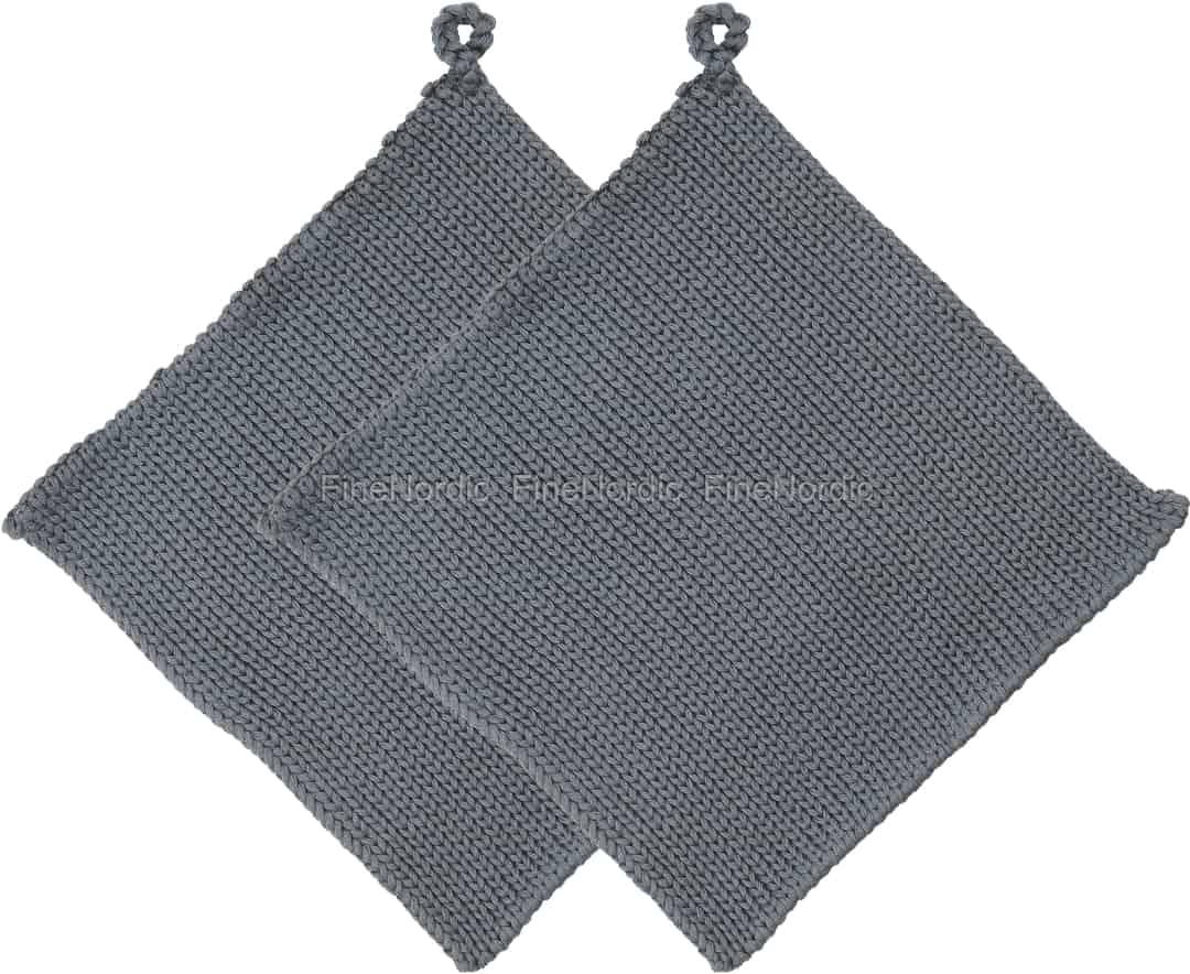 Schützen Sie Ihre Hände mit diesen blauen Topflappen von Ib Laursen, besonders wenn Sie in der Küche heiße Kochgeräte heben oder bewegen müssen. Dieses 2er-Set hat eine gräulich blaue Farbe und besteht aus 100% Baumwolle. Wenn diese gestrickten Topflappen verschmutzt sind, können Sie sie bei 40 C in der Waschmaschine waschen. Sie können sie auch als provisorische Untersetzer verwenden, wenn Sie einen heißen Topf nicht direkt auf den schönen Esstisch stellen möchten. Wenn sie nicht in Benutzung sind dann hängen Sie sie einfach in Ihrer Küche auf, und so verleihen Sie dem Raum einen schönen Farbtupfer. Dieses Topflappen Set ist ein hübsches und dazu auch sehr praktisches Küchenaccessoire.