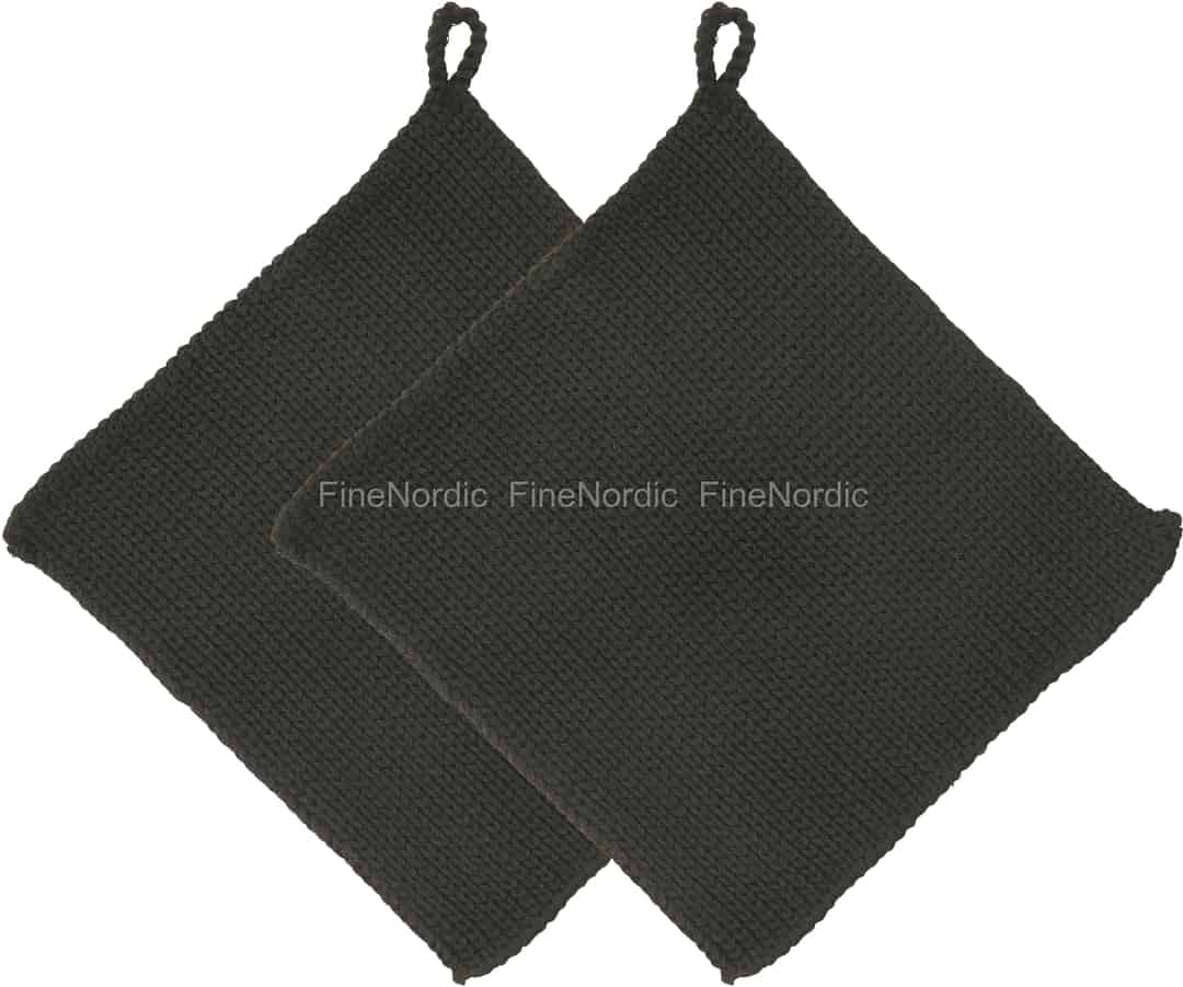 Schauen Sie sich doch mal dieses schöne gestrickte Topflappen Set von Ib Laursen an. Die beiden Topflappen sind sehr praktisch, ganz besonders wenn Sie heiße Backbleche oder Backformen aus dem Ofen nehmen wollen. Sie kommen im trendigen Schwarz und sind aus Baumwolle gemacht. Wenn sie mal gerade nicht im Einsatz sind, dann hängen Sie sie doch einfach an einen Küchenhaken, und schon können sie als hübsche Dekoration im Raum dienen. Ib Laursens beliebte Topflappen sind in verschiedenen Farben in unserem Webshop erhältlich.