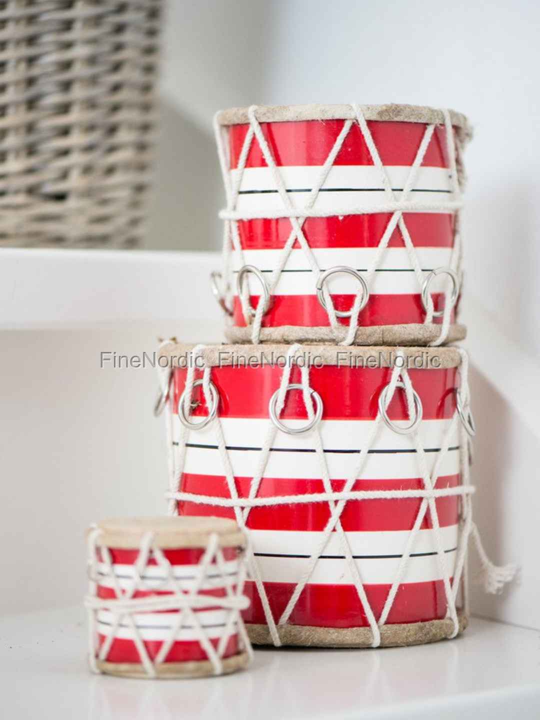 Trommel Rote Streifen Hohes Modell H 6,5 cm, von Ib Laursen.