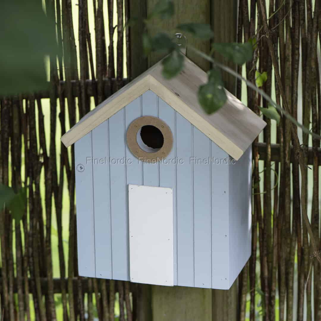 Stellen Sie sich dochmal vor, wenn Sie ein kleiner Vogel wären, der nach einem Ort sucht, an dem er ein Nest bauen könnte, wäre diese Schönheit dann nicht mehr als ausreichend? Wir glauben schon! Das hübsche Strandhaus Vogelhaus von Ib Laursen sieht genau so aus, wie sein Name vermuten lässt: wie ein Strandhaus. Die hellblauen Seiten und das Natur Holzdach bilden einen schönen Kontrast zu der weißen Tür. Über der Tür sieht man eine runde Öffnung, die gerade groß genug ist, um einem kleinen Vogel Eingang zu gewähren. Das heißt, sie sorgt dafür, dass die Raubtiere draußen bleiben müssen und egal, ob es regnet oder hagelt, der kleine Vogel kann das trockene und behagliche Innere des Vogelhauses ganz sorgenfrei genießen. Auf diese Weise kann er sich total darauf konzentrieren, ein schönes Nest darin zu bauen. Sobald die Küken geschlüpft sind und Muttervogel und Jungvögel das „Gebäude“ verlassen haben, ist es ganz einfach das Vogelhäuschen zu reinigen, indem Sie die eine Außenseite öffnen. Nun steht es schon bald wieder bereit, um dem nächsten kleinen Nistvogel Schutz bieten zu können.