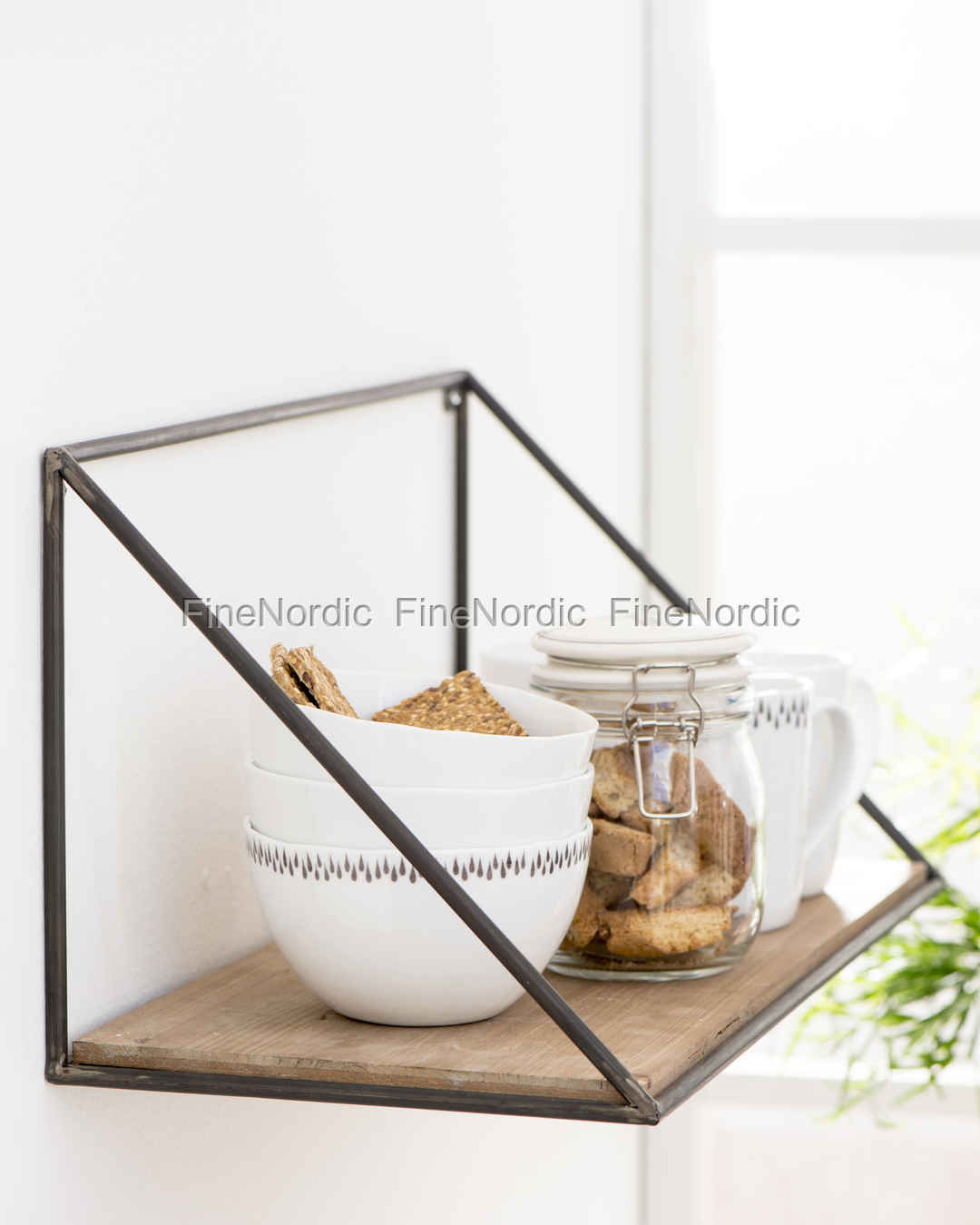 Sie lieben den Retro Stil? Dann wäre das Ib Laursen Wandregal mit seinen dreieckigen Seiten vielleicht genau das Richtige für Sie. Das Metallregal mit Holzbrett überzeugt mit seinen geraden Linien und dem hübschen Kontrast zwischen Metall und Holz. An den vorgesehenen Anhängern ist es bequem an die Wand zu montieren und kann sofort genutzt werden. Seine breite Stellfläche bietet in der Küche genügend Platz für Pflanzen- und Kräutertöpfe, oder Frühstücksteller und Müslischalen. Ein wirklich gut aussehendes und praktisches Home Accessoire ist dieses im Factory Stil gemachte Wandregal von Ib Laursen.