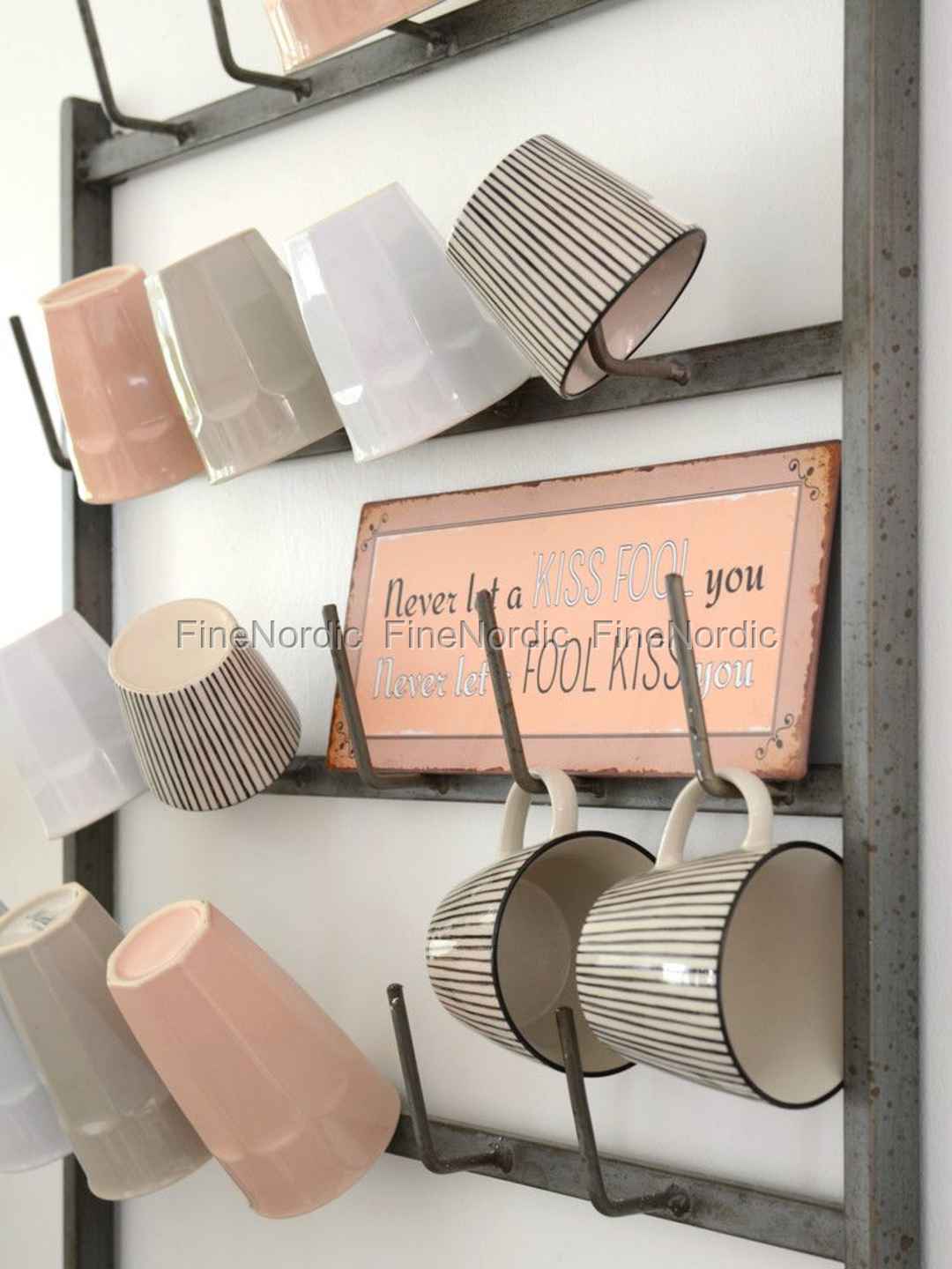 Der Wandständer in Grau von Ib Laursen passt gut auf Ihre Tassen und Becher auf! An die 25 Haken kann man seine Trinkgefäße leicht anhängen und so sind sie immer in Reichweite. Der 75 x 59 cm große Wandständer schaut dazu auch noch dekorativ aus, egal ob in der Küche oder Esszimmer. Irgendwie ein bisschen roh und doch sehr originell! Gut ausschauen und dazu den hektischen Alltag ein wenig vereinfachen, das gefällt uns gut!