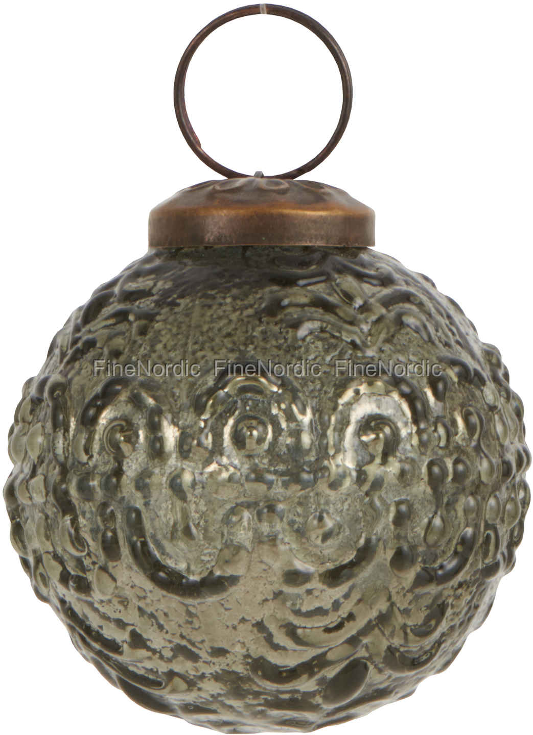 Ib Laursen Weihnachtskugel Gewelltes Muster Olive Klein