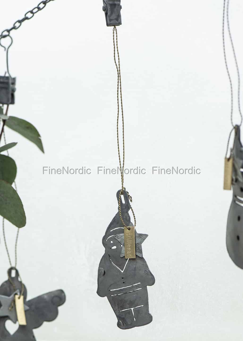 Der Zink Weihnachtsmann von Ib Laursen hängt an einem goldfarbigem Draht zum einfachen Aufhängen. Der Zinkanhänger in Form eines Weihnachtsmanns ist eine hübsche Deko für die Weihnachtszeit. Der Metallanhänger kann alleine, oder in Kombination mit anderen Weihnachtsanhängern aufgehängt werden. Er schmückt einen Weihnachtskranz genauso schön wie den Weihnachtsbaum oder einen einzelnen Kiefernzweig. Der graue Weihnachtsmann bietet einen hübschen Kontrast zu dem goldfarbigen Draht und kann auch gut an ein Weihnachtsgeschenk gehängt werden.