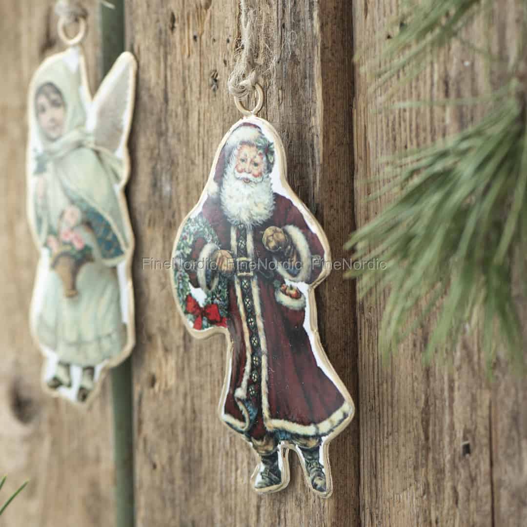 Der Weihnachtsmann zum Aufhängen mit Kranz von Ib Laursen ist ein gut aussehender Weihnachtsschmuck für die schönste Zeit im Jahr. Der Metallanhänger im nostalgischen Stil zeigt einen Weihnachtsmann mit weißem Bart, der einen roten Weihnachtsmannmantel und eine Weihnachtsmannmütze trägt. Anstelle von Knöpfen sind am Mantel eine Reihe Glöckchen angebracht und ein großer Gürtel ist um den Bauch gespannt. Um den einen Arm herum trägt der Weihnachtsmann einen Weihnachtskranz und aus seiner einen Manteltasche sieht man Äpfel herausgucken. Der Weihnachtsanhänger ist eine tolle Weihnachtsdeko im Retro Stil und kann an seinem runden Ring zum Anhängen am Weihnachtsbaum, an einen Tannenzweig oder an einen Weihnachtskranz genutzt werden. Auch ein hübsch eingepacktes Weihnachtsgeschenk kann man damit den letzten Schliff verleihen und man kann das Metallornament gut mit anderen Ib Laursen Weihnachtsanhängern kombinieren.
