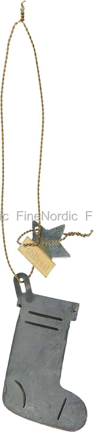 Der Weihnachtstrumpf von Ib Laursen ist aus Zink und hängt an einem goldfarbigem Draht zum einfachen Aufhängen. Der Zinkanhänger in Form eines Weihnachtsstrumpfs ist eine schöne Weihnachtsdeko. Der Metallanhänger kann ganz alleine, oder aber auch zusammen mit anderen Weihnachtsanhängern aufgehängt werden. Der Zinkanhänger schmückt den Weihnachtsbaum genauso schön wie einen einzelnen Tannenzweig in der Vase. Der graue Weihnachtsstrumpf sorgt für einen hübschen Kontrast zu seinem goldfarbigen Draht und kann auch als kleine extra Deko an ein hübsch eingepacktes Weihnachtsgeschenk gebunden werden.
