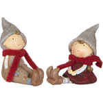 Dieses entzückende Set Wichtelmädchen und Wichteljunge von Ib Laursen ist ein hübscher Weihnachtsschmuck. Das Wichtelmädchen und der Wichteljunge tragen jeweils einen spitzen grauen Wichtelhut und einen roten Schal. Das Mädchen hat ein rotes Kleid an und das Outfit von dem Jungen sieht geflickt aus. Beide sitzen und jeder hat ein Lächeln in Gesicht. Sie können sie auf ein Fensterbrett oder ein Regal stellen oder anderen Weihnachtsdekorationen hinzufügen. Sie können in Ihrem eigenen Zuhause etwas Weihnachtsfeeling versprühen, oder Sie können sie auch als schönes Weihnachtsgeschenk für einen lieben Menschen verwenden.