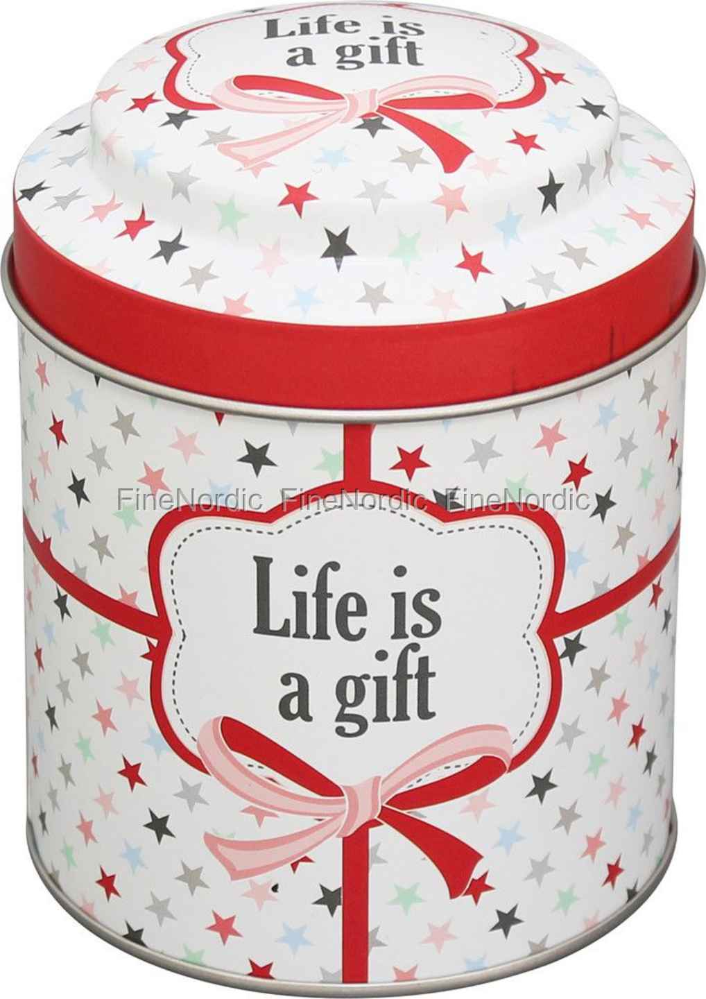 Die Krasilnikoff Dose „Life is a gift“ ist mit vielen bunten Sternen bedeckt und mit einem aufgemalten Band, was es so aussehen lässt, als wenn die Teedose wie ein Geschenk verpackt ist. Auf der Seite und dem Deckel finden Sie den weisen Spruch: „Life is a gift“. Die Teedose kann natürlich für Tee genutzt werden, aber auch für getrocknete Kräuter, kleine wichtige persönliche Gegenstände, Münzen und vieles mehr. Wenn Sie sie auf die Küchenzeile stellen, wird sie dazu noch als Dekoration dienen. Wenn Sie mehr als eine Dose benötigen, dann werfen Sie bitte einen Blick auf alle anderen schönen Krasilnikoff Dosen, die unser Webshop zu bieten hat.