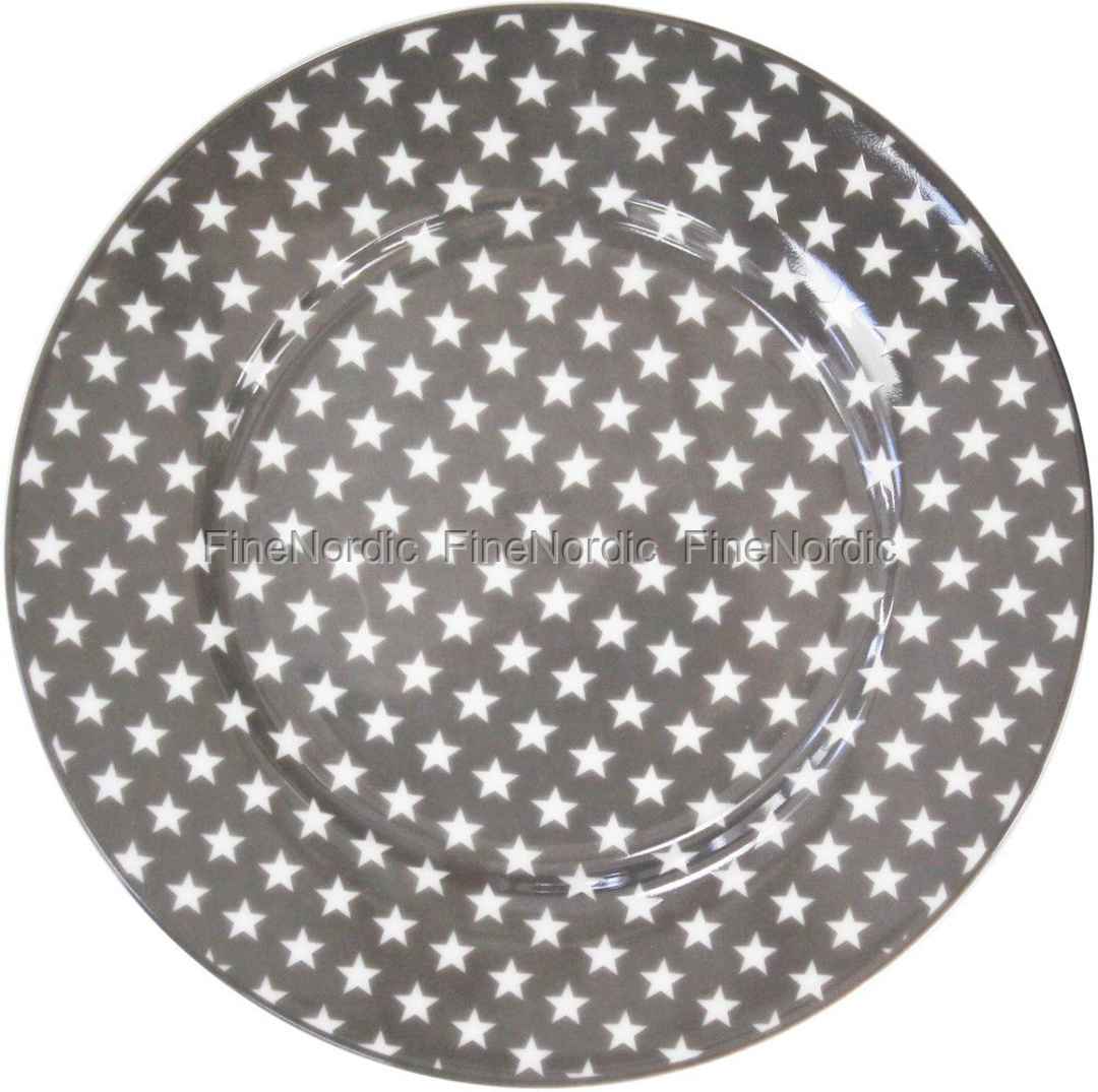 Krasilnikoff Happy Dessert Plate - Teller - Stars Charcoal Ø 20 cm