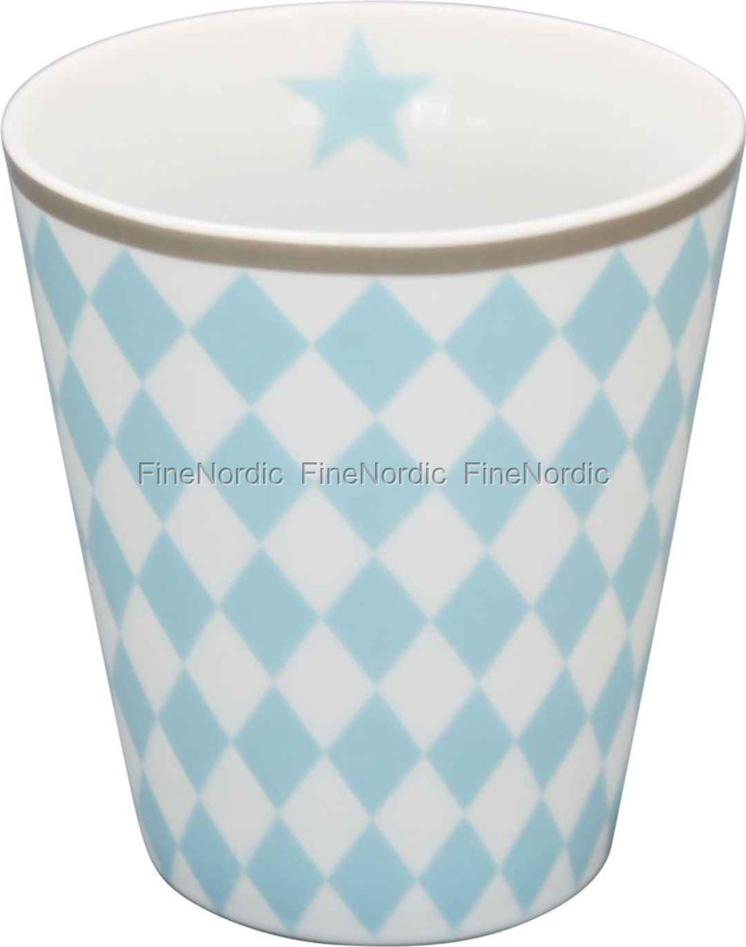 Eine weitere schöne Tasse aus Krasilnikoffs Happy Mug Kollektion ist diese Harlekin Blau Tasse. Die Außenseite dieser Tasse zeigt ein hellblaues Harlekinmuster auf einem hellen Hintergrund. Entlang der oberen Kante ist ein grauer Rand und auf der Innenseite der Tasse können Sie einen einzelnen hellblauen Stern sehen. Die Tasse ist spülmaschinen- und mikrowellenfest und besteht aus 100% Porzellan. All das, plus die schöne Farbkombination und das attraktive Muster dieser Harlekin Happy Mug, machen sie einfach unwiderstehlich.