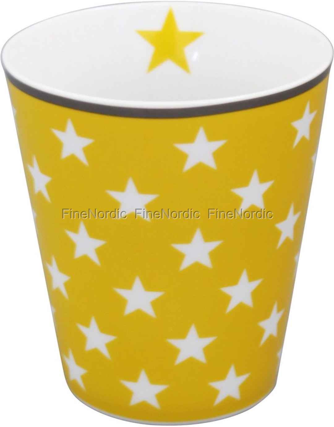 Krasilnikoffs Happy Mug Yellow Star bringt Sonnenschein auf den Frühstückstisch. Die leuchtende Farbe wird Sie aufwecken und Sie dann sofort in gute Laune versetzen. Füllen Sie die Tasse mit 250 ml Ihres Lieblingsgetränks und genießen Sie ein paar Minuten der Ruhe und Freude. Haben Sie schon eine Krasilnikoff Happy Mug Sammlung? Wenn nicht, dann ist diese attraktive Yellow Star Tasse von Krasilnikoff ein sehr guter Grund, eine zu starten. Die Tasse ist spülmaschinen- und mikrowellengeeignet und somit sehr praktisch für den täglichen Gebrauch. Die weißen Sterne auf gelbem Hintergrund bieten einen schönen Kontrast zum weißen Inneren des Bechers, der nur einen gelben Stern aufweist. Der Happy Mug Yellow Star ist auch eine großartige Geschenkidee für ganz bestimmte Person, die Sie den Sonnenschein Ihres Lebens nennen.