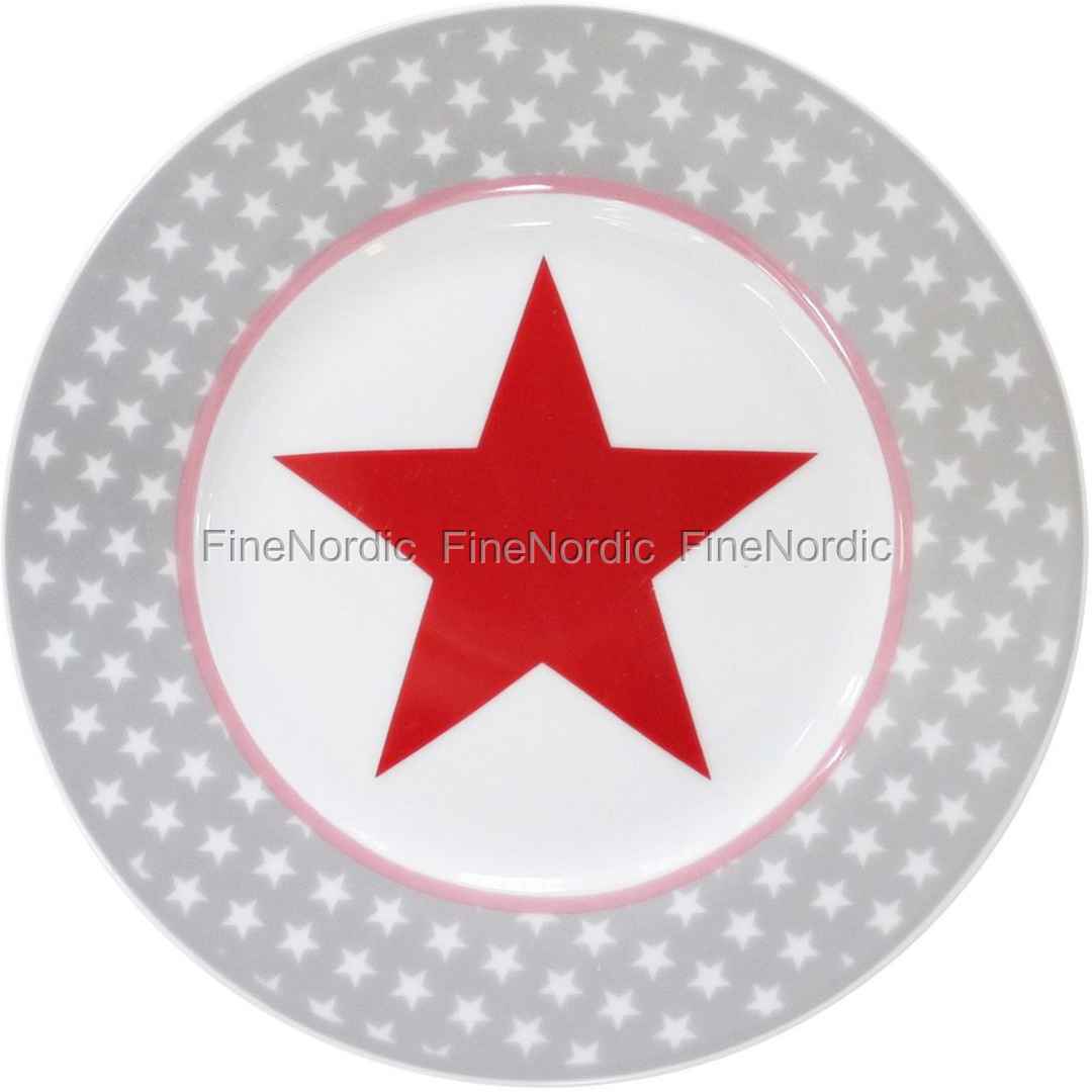 Krasilnikoff Happy Plate - Teller - Grey Big Star - Ø 20 cm