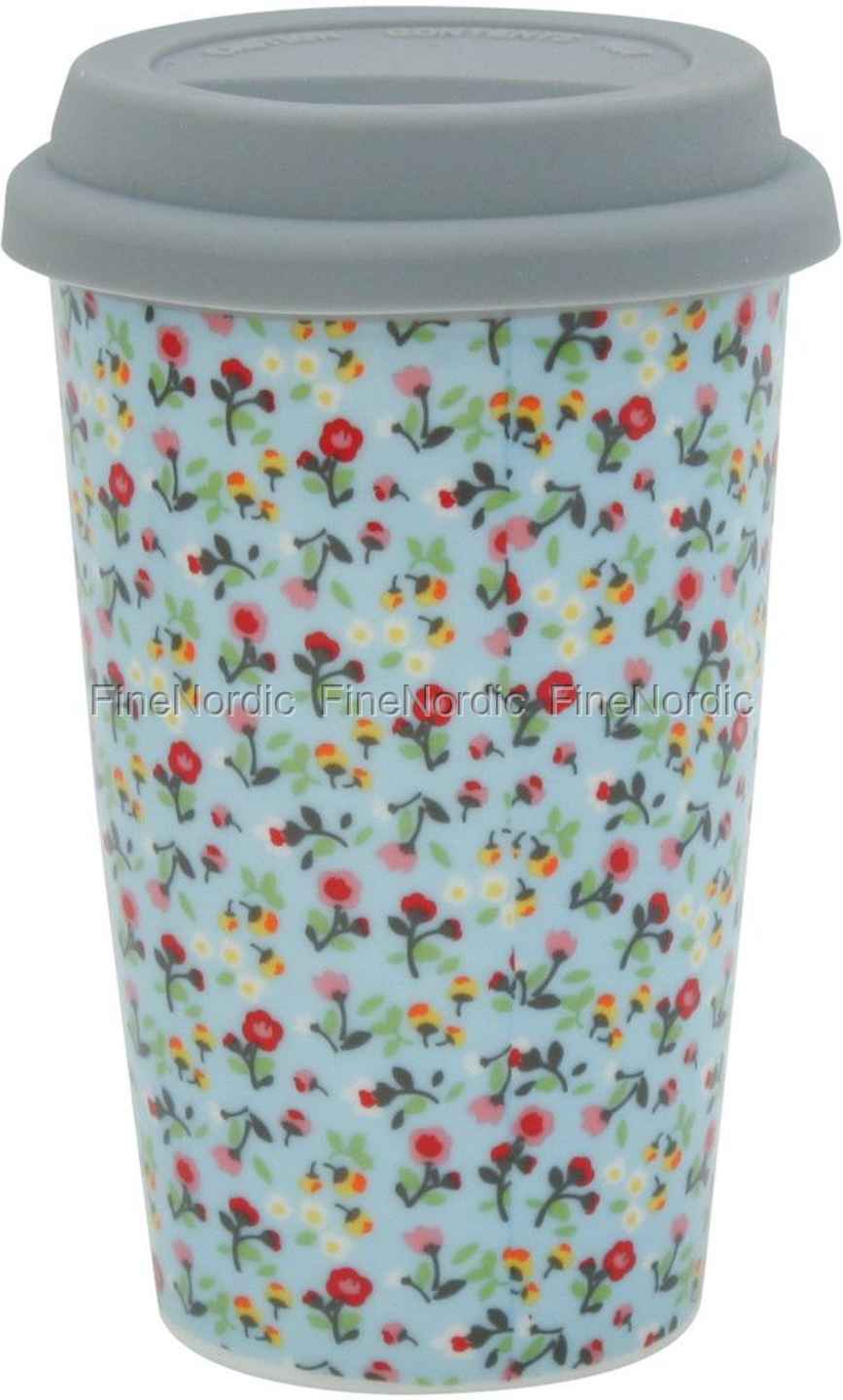 Krasilnikoff Travel Mug - Double Wall Thermo - Blue Mille Fleurs