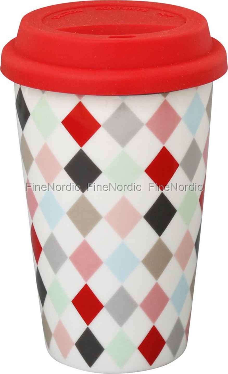 Krasilnikoff Travel Mug - Double Wall Thermo - Multi Harlekin