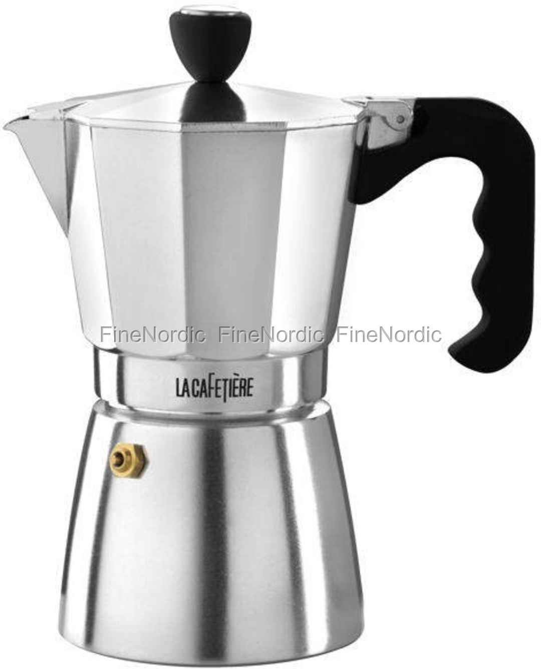 Stilvolle Qualitäts-Espressokanne von La Cafetière aus Aluminium für bis zu sechs Tassen guten Espresso nach ursprünglicher Tradition. Die Espressokanne ist eine Stil-Ikone aus dem goldenen Zeitalter des Art-Deco-Design. Alle Ventile sind mit hochwertigen Edelstahlfedern und Kugellagern für maximale Sicherheit und Haltbarkeit versehen. Wir empfehlen, die Espressokanne von Hand zu waschen.