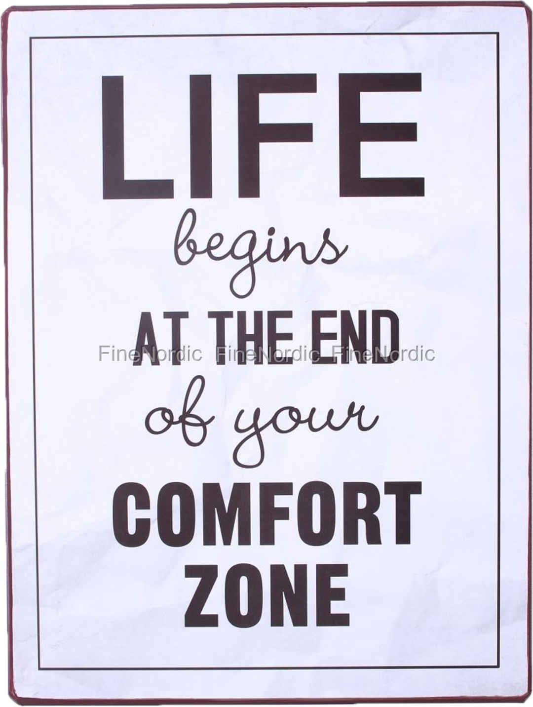 La Finesse Metallschild Life begins at the end of your comfort zone