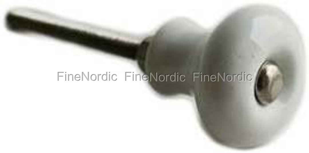 Dieser kleine weiße Porzellangriff von La Finesse hat ein schlichtes Design und ist doch so attraktiv. Der runde Griff macht es einem sehr einfach, eine Schublade oder eine Tür zu öffnen. Verwenden Sie ihn, um eine alte Kommode oder ein Erbstück aufzupeppen. Porzellangriffe sind eine kostengünstige Möglichkeit, das Aussehen eines alten Möbelstücks komplett zu verändern. Wenn Sie Porzellangriffe mögen, dann werfen Sie bitte auch einen Blick auf all die anderen Griffe, die wir in unserem Webshop anbieten. Der gesamte Porzellangriff vom Porzellankopf bis zum Ende der Schraube ist 7 cm lang. Die Metallschraube allein ist 4,5 cm lang und der weiße Porzellankopf hat einen Durchmesser von 2,5 cm.