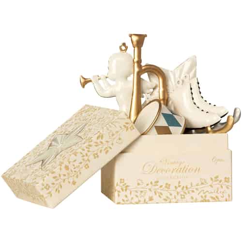 Sie suchen nach besonderen Anhängern und Baumschmuck für Ihren Weihnachtsbaum, oder zum Schmücken vom einsamen Tannenzweig im Kinderzimmer? Suchen Sie nicht weiter. Maileg hat eine ansehnliche Auswahl an Weihnachtsornamenten aus Metall, Holz und Stoff. Der bezaubernde Weihnachtsschmuck dekoriert den Weihnachtsbaum, den Tür Kranz, den Tannenzweig in der Vase und auch den Adventskranz auf dem Tisch. Maileg’s originelle und nostalgische Weihnachtsanhänger werden mit vielen, liebevollen Details und in vielen verschiedenen Varianten produziert. Weihnachtsgänse, Schneemänner, Sterne und Engel sind nur eine kleine Auswahl an Mailegs großartigem Baumschmuck. Schauen Sie sich um und holen auch Sie sich ein wenig nostalgisches Maileg Weihnachtsfeeling in Ihr Zuhause.