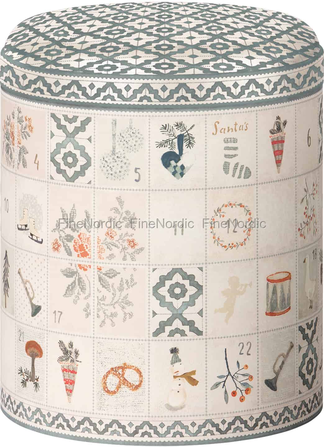 Schauen Sie sich doch mal diese wunderschöne Keksdose an, in der Sie all Ihre frisch gebackenen Kekse aufbewahren können. Mailegs Cookie Box Days of December ist mit einem Briefmarken-artigen Muster verziert, auf dem die Dezember Tage und hübsche weihnachtliche Abbildungen zu sehen sind. Die Dose bringt sofort etwas Weihnachtsstimmung in die Küche. Die Keksdose hat das Lebensmittelzertifikat und ist auch eine wunderbare Geschenkidee für eine liebe Freundin, die gerne backt.