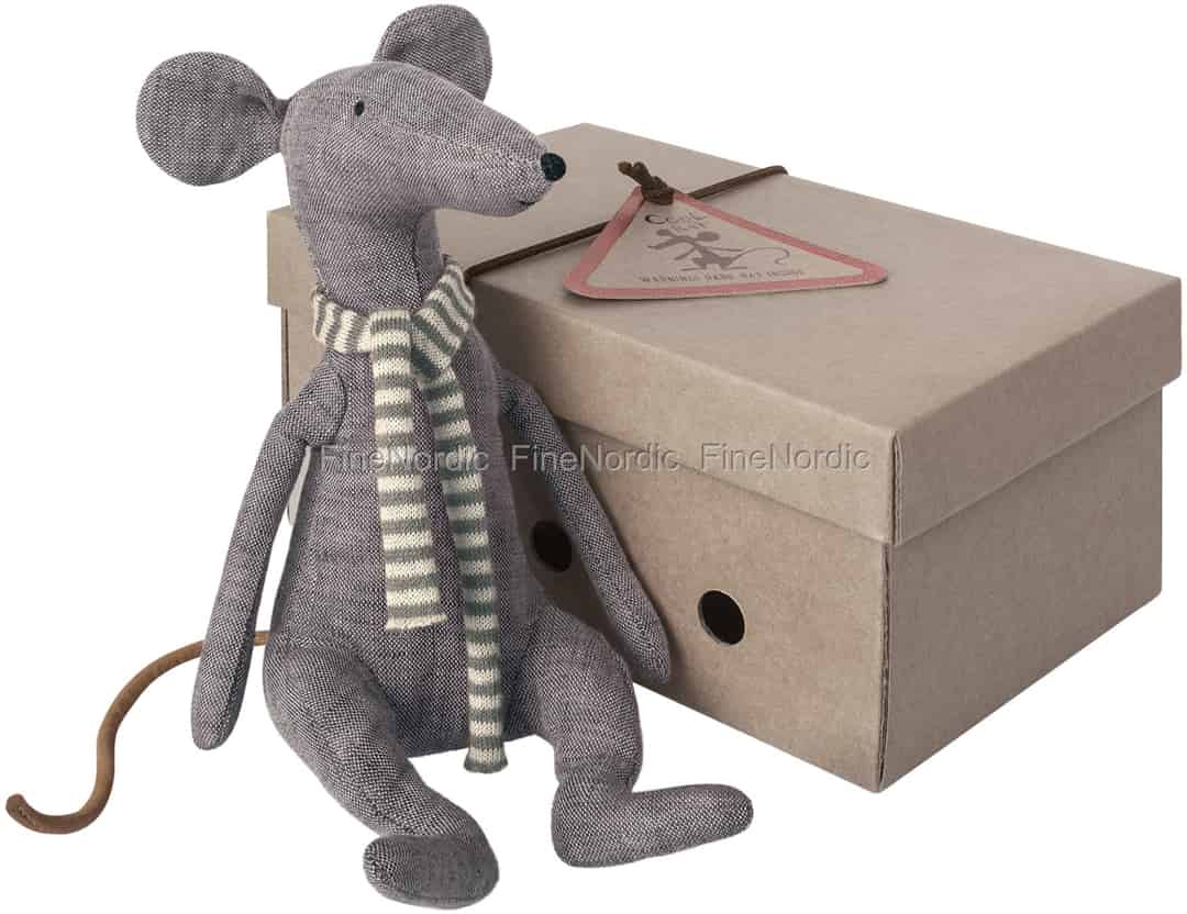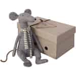 Haben Sie Mr. Cool Rat schon kennengelernt? Er schläft in seiner eigenen Box und wenn er nicht schläft, geht er gerne auf schelmische Abenteuer. Meistens kommt die Maileg Ratte erst nachts raus und in kühlen Nächten bindet er sich gerne mal seinen gestreiften Schal um seinen Rattenhals, um sich so warm zu halten. Er mag es, Spaß mit den anderen Maileg Tieren zu haben und spielt auch gerne mit einem kleinen Menschenfreund. Er ist eine total coole Geschenkidee für ein kleines Geburtstagskind.