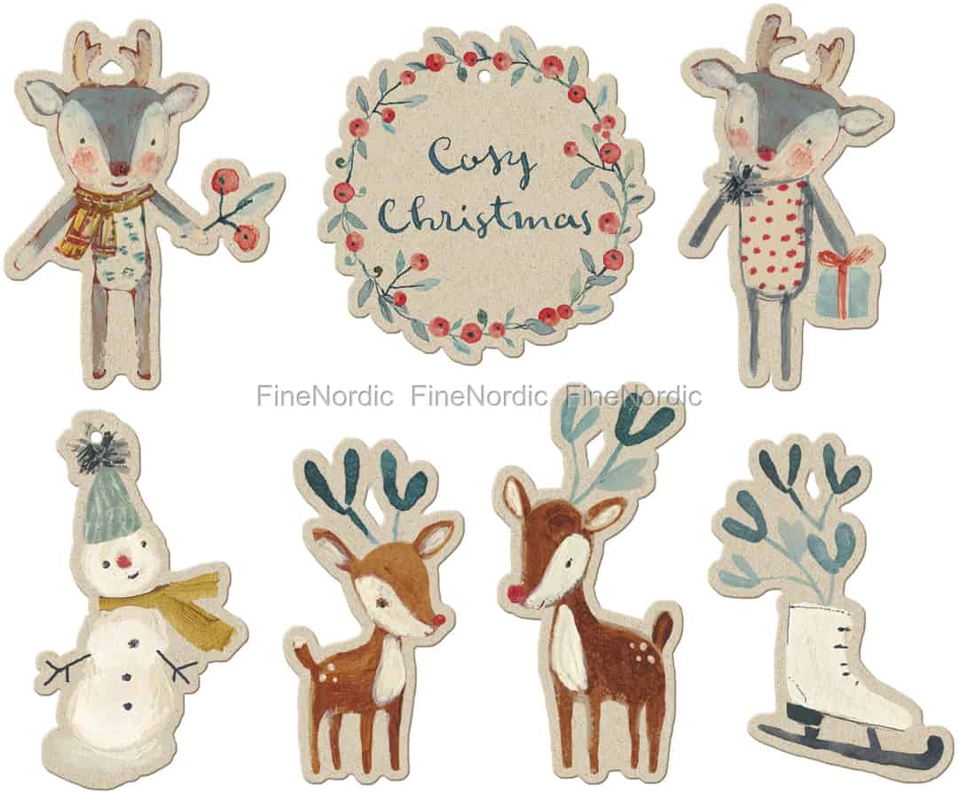 Befestigen Sie einen dieser hübschen Maileg Geschenkanhänger an einem schön verpackten Weihnachtsgeschenk, sodass jeder am Weihnachtstag weiß, für wen das Geschenk bestimmt ist. Die Cosy Christmas Geschenkanhänger sind im 14er-Set mit 7 verschiedenen Motiven erhältlich, von denen eines bezaubernder aussieht als das andere. Die Motive bestehen aus 2 verschiedenen Rentieren und 2 verschiedenen Rehen, einem Schlittschuh, einem Schneemann und einem Cosy Christmas Weihnachtskranz. Schreiben Sie einfach Ihr Für und Von auf die einfarbigen Rückseite des Geschenkanhängers und befestigen Sie ihn am Weihnachtsgeschenk. Die Cosy Christmas Geschenkanhänger von Maileg werden in einer kleinen Plastiktüte geliefert und es gibt von jedem Motiv je zwei Stück. Schauen Sie sich gerne mal all die weihnachtlichen Maileg Produkte an, die wir in unserem Webshop anbieten. Maileg macht Weihnachten einfach noch viel schöner.