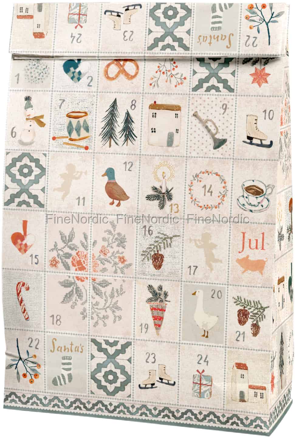 Diese Geschenktüte ist perfekt, wenn Sie ein ungewöhnlich geformtes Weihnachtsgeschenk einpacken möchten oder es eilig haben. Öffnen Sie einfach diese wunderschön dekorierte Geschenktüte, legen Sie das Geschenk hinein, falten Sie sie oben einmal um und Ihr Geschenk ist eingepackt. Sie können natürlich auch noch ein Band hinzufügen oder eine Grußkarte, das entscheiden Sie. Die Maileg Days of December Geschenktüte ist nicht nur praktisch, sondern dazu auch sehr schön anzusehen. Die handgezeichneten Illustrationen auf der Tüte erzählen Geschichten des Dezembers. Sie ist auch in einer kleineren Version erhältlich. Außerdem gibt es dazu auch Geschenkpapierrollen, Servietten und eine Gebäckdose, alle mit demselben fantastischen Print.