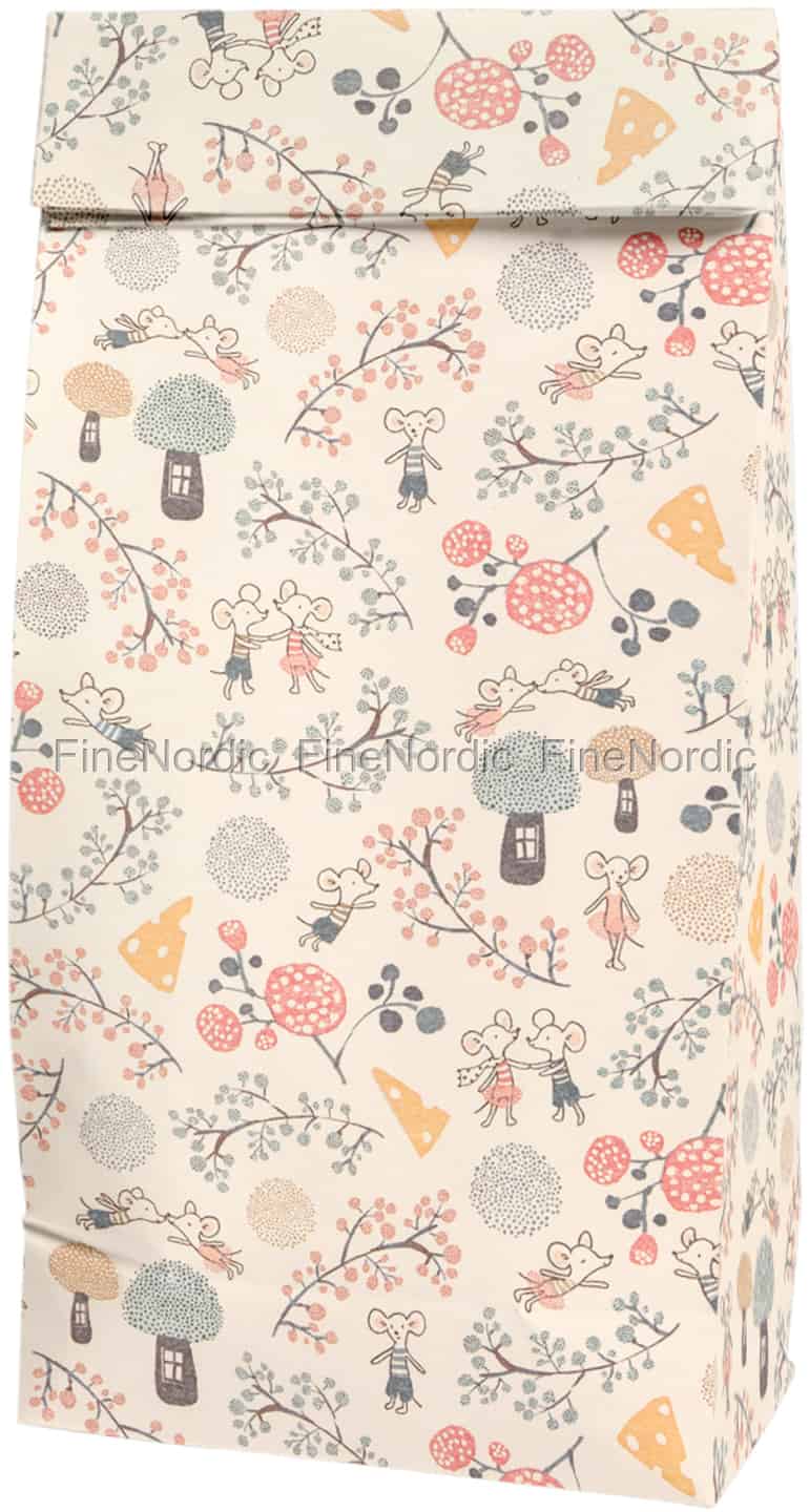 Diese entzückende kleine Maileg Geschenktüte mit Mausparty ist eine schöne und einfache Art und Weise ein Geschenk in aller Eile hübsch einzupacken. Öffnen Sie einfach die Tüte, legen Sie das Geschenk hinein und falten Sie die Tüte am oberen Ende um und voilà, die Tüte und ihr Inhalt sind bereit, den Besitzer zu wechseln! Die Geschenktüte ist mit einer ganzen Reihe charmanter kleiner Mäuse geschmückt, die zusammen tanzen und spielen. Auf der Tüte sind auch kleine pilzförmige Häuser, Käseecken und blühende Zweige zu sehen. Die Geschenktüte ist 24,5 cm groß und ist die perfekte Geschenktüte für ein kleines, seltsam geformtes Geschenk, oder aber vielleicht auch für eine kleine Maileg Maus?